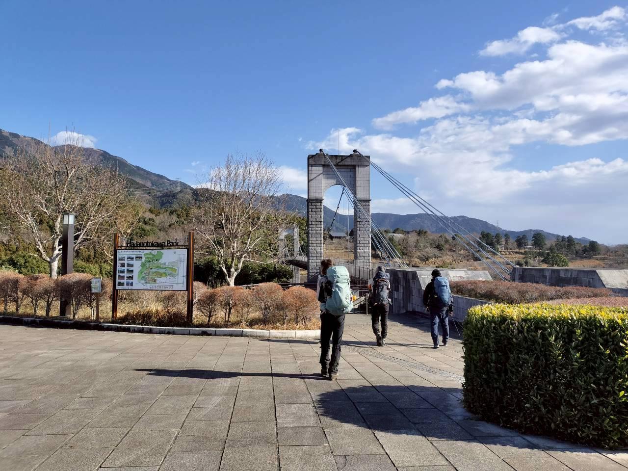 風の吊り橋を渡って駐車場へ向かう